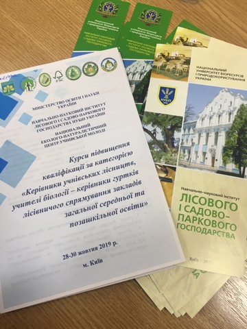29 жовтня на базі ННІ лісового і садово-паркового господарства та ВП НУБіП України «Боярська ЛДС» проведено тематичні курси підвищення кваліфікації за категорією «Керівники учнівських лісництв, учителі біології – керівники гуртків лісівничого спрямування закладів загальної середньої та позашкільної освіти», які були започатковані 2018 року Національним еколого-натуралістичним центром учнівської молоді спільно з НУБіП України.