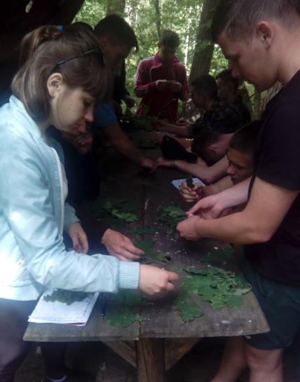 Студенти ознайомилися з різними типами пошкоджень, яйцекладок та видами комах, зокрема, Cameraria ohridella (каштанова мінуюча міль), що оселилася на каштанах біля 2-го навчального корпусу нашого університету, Coriscium brongniardella (дубова широкомінуюча міль) практиканти зустріли у насадженнях Голосіївського лісництва, також ідентифікували ходи Scolytus scolytus Fabr. (заболонник-руйнівник).
