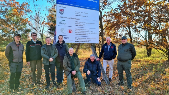Директор Глобального центру моніторингу пожеж Йоганн Голдаммер (на фото другий праворуч) ознайомив делегацію з німецьким досвідом управління пожежами на колишніх військових територіях землі Бранденбург, забруднених нерозірваними боєприпасами (UXO), полігон Jüterbog