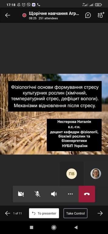Доцент кафедри фізіології, біохімії рослин та біоенергетики Нестерова Н.Г. також була спікером цьогорічного онлайн-навчання. На лекції обговорили фізіологічні причини стресу рослин, його види та шляхи мінімізації ушкоджень від нього.