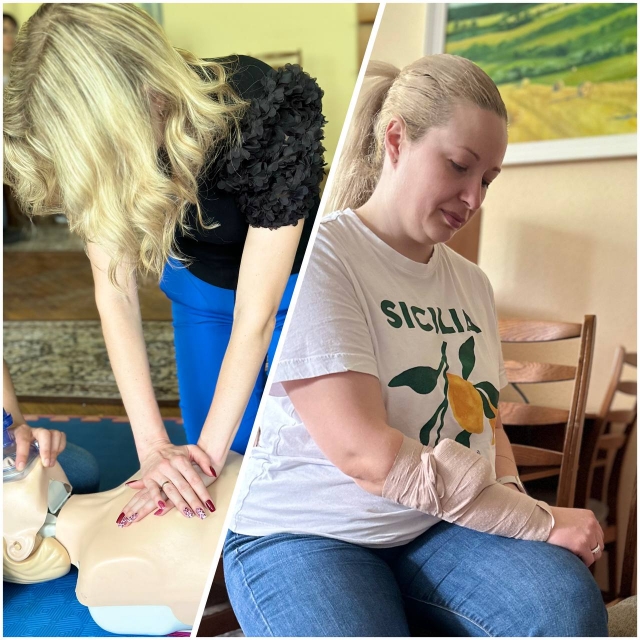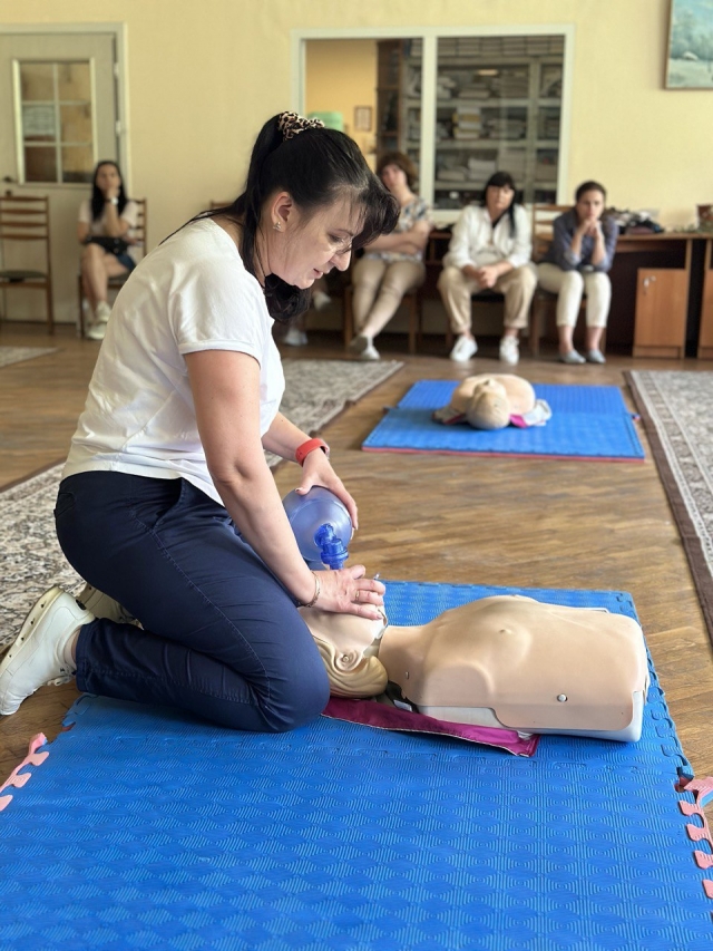 Навчання складалося з двох блоків – теоретичної та практичної частини. Під час теоретичної частини учасники навчання прослухали детальну багатогодинну лекцію про порядок надання домедичної допомоги дорослим при раптовій зупинці кровообігу, при порушенні прохідності верхніх дихальних шляхів, при підозрі на гострий мозковий інсульт, при термічних опіках, при загальному переохолодженні та/або відмороженні, при судомах , при пошкодженні очей, а також в умовах бойових дій та воєнного стану.