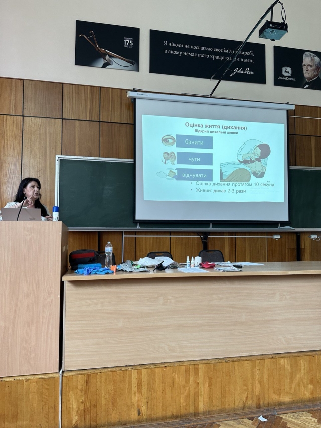 Співробітники Юридичного факультету НУБіП України пройшли навчання з домедичної допомоги у разі нещасних випадків на виробництві в умовах воєнного стану, спікеркою якого стала к.б.н. “Гігієна та професійна патологія”, доцент кафедри охорони праці та біотехнічних систем у тваринництві НУБіП України, сертифікований тренер ERC з ITLS та BLS, координатор групи Гігієна та здоров’я ESOSH, відмінник освіти України Білько Тамара Олександрівна.