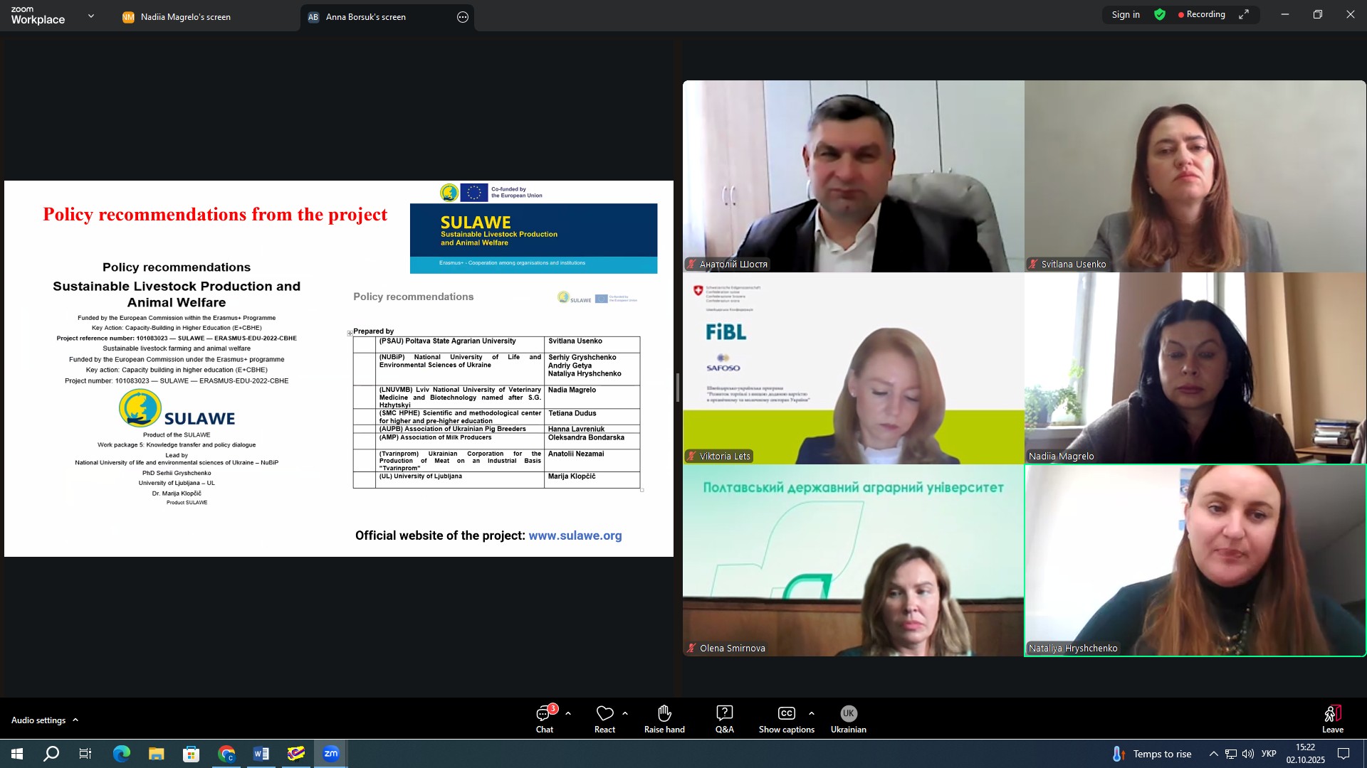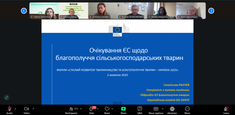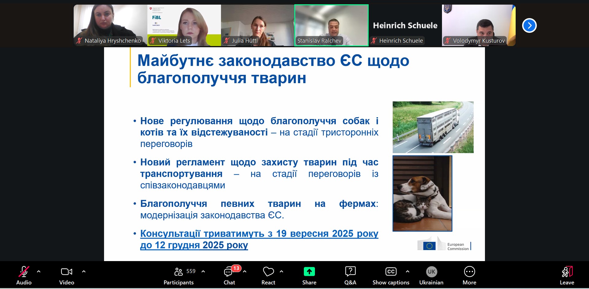 Вже з 01 січня 2026 року українські товаровиробники продукції тваринництва повинні реалізовувати свою діяльність відповідно вимог благополуччя. Такі реалії вимагають значних організаційних трансформацій і технологічних змін в умовах воєнного стану та дефіциту кадрового забезпечення суб’єктів господарювання в галузі тваринництва. У вирішенні даного системного питання задіяні наукові співробітники НУБіП України. На факультеті тваринництва та водних біоресурсів взірцево реалізується Міжнародний проект Еразмус + SuLaWe «Стале тваринництво та благополуччя тварин», що є складовою частиною у виконанні Дорожньої карти щодо забезпечення впровадження законодавства щодо благополуччя тварин в Україні на 2025-2027 роки. Спільними зусиллями нашого проекту, що фінансово підтримується Виконавчим агентством Європейської Комісії з питань освіти, аудіовізуальних засобів і культури, а також швейцарсько-української програми «Розвиток торгівлі з вищою доданою вартістю в органічному та молочному секторах України», що впроваджується Дослідним інститутом органічного сільського господарства (FiBL, Швейцарія) у партнерстві із SAFOSO AG (Швейцарія), COST Action AFFECT-EVO (CA23106), фінансованою COST (Європейське співробітництво в галузі науки і технологій) у співпраці з Міністерством економіки, довкілля та сільського господарства України та Держпродспоживслужбою вдалося на найвищому рівні організувати та провести науково-практичну он-лайн конференцію «Сталий розвиток тваринництва та благополуччя тварин» яка символічно відбулася 02 жовтня — у Всесвітній день сільськогосподарських тварин!