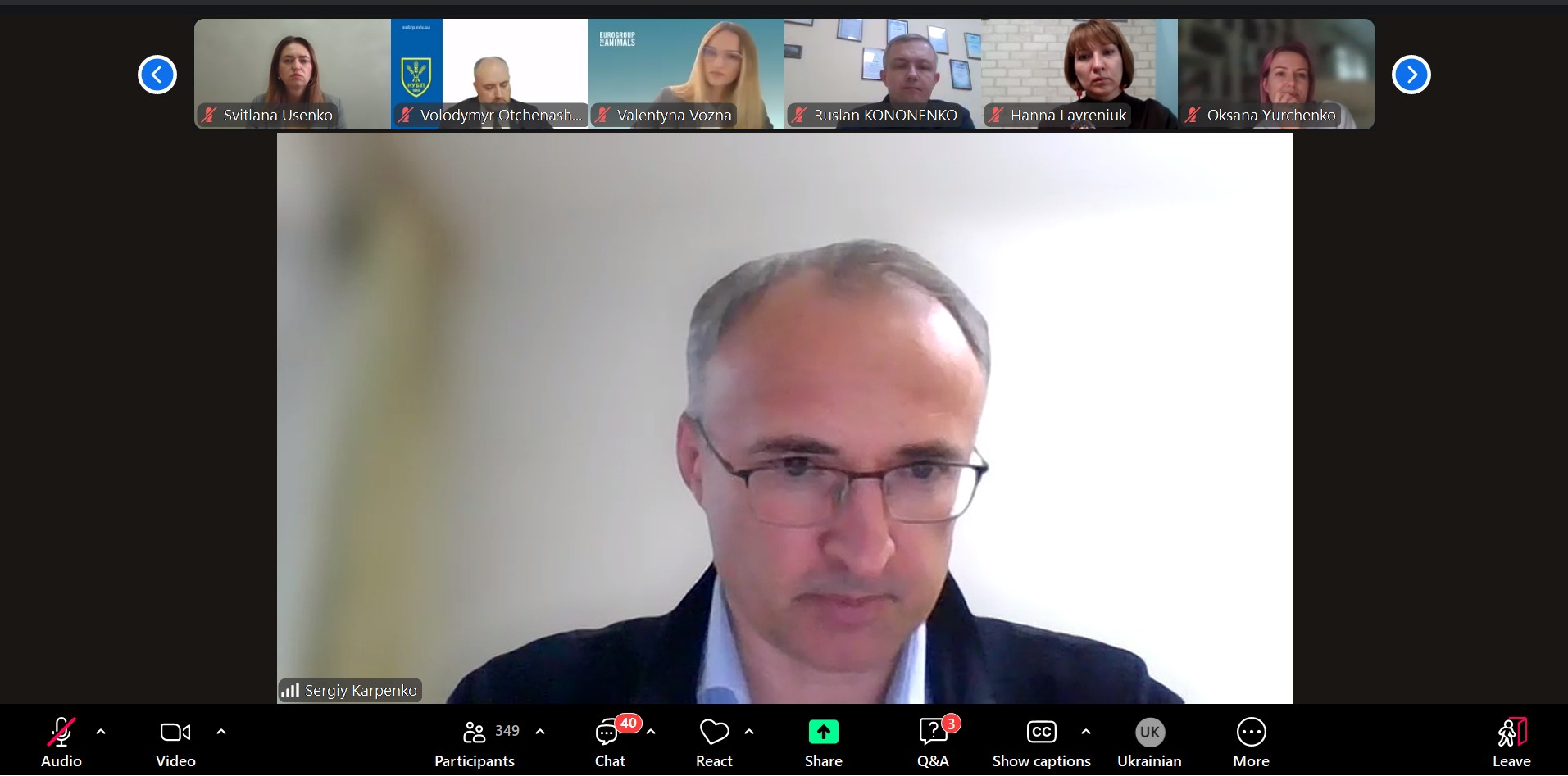 Після того начальник відділу з питань здоров’я та благополуччя тварин управління санітарних та фітосанітарних заходів Департаменту державної політики у сфері санітарних та фітосанітарних заходів і продовольчої безпеки Міністерства економіки, довкілля та сільського господарства України Віталій КРЮЧКОВ доповів про фактичний стан гармонізації законодавства України відповідно до вимог ЄС. Олексій КЛИМЕНОК, начальник відділу здоров’я та благополуччя тварин, організації протиепізотичних заходів Департаменту безпечності харчових продуктів та ветеринарної медицини Держпродспоживслужби закцентував увагу учасників конференції на поточному стані впровадження державного контролю за благополуччям сільськогосподарських тварин в Україні.
