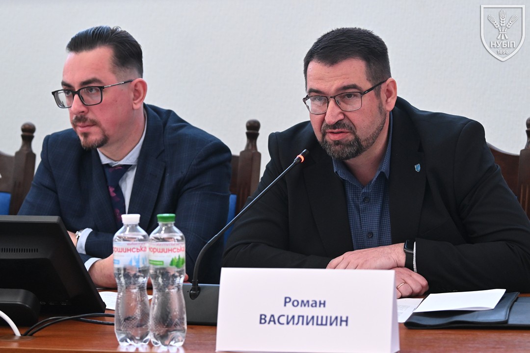 Роман ВАСИЛИШИН, директор ННІ лісового і садово-паркового господарства НУБіП: «…Науковці повинні формувати наукові прогнози, які будуть формувати основу прийняття управлінських рішень, а з іншого боку, мають формувати освітній контент, який має виховувати в майбутніх фахівцях вміння враховувати питання господарювання в повоєнних лісах і вирішувати як екологічні так і економічні проблеми».
