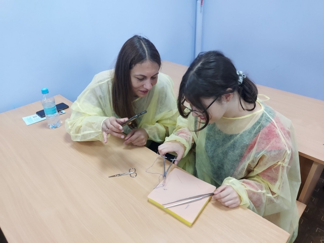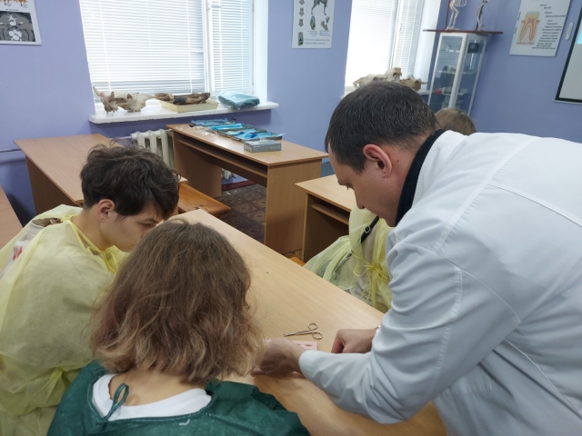 Кафедра ветеринарної хірургії ім. акад. І.О. Поваженка провела майстер-клас на тему «Накладання швів на рану», де майбутні абітурієнти мали можливість побути у ролі хірурга та на макетах накласти шви. Також абітурієнти відвідали операційні для тварин. Майстер-клас провели доцент Вадим Климчук та асистент Юлія Довбня.