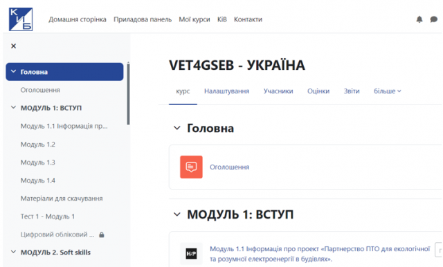 На сайті проєкту vet4gseb.eu доступний безкоштовний онлайн-курс із повним навчальним контентом. Ключові аспекти модулів охоплюють відновлювані джерела енергії, встановлення сонячних панелей та інсталяційні процеси. Особливу увагу було приділено впровадженню інноваційних методів навчання та використанню цифрових технологій, спрямованих на подолання прогалин у професійній підготовці фахівців професійно-технічної освіти й усіх зацікавлених учасників.