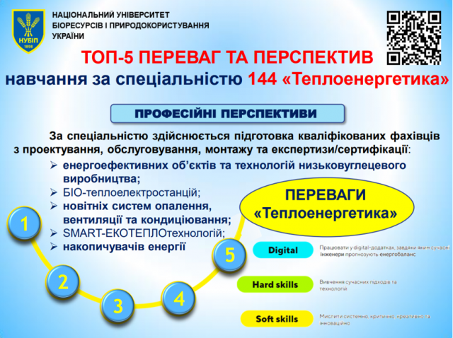 Незмінний спікер Школи юного енергетика, доцент кафедри інженерії енергосистем Олена Шеліманова, допомогла школярам поглибити свої знання про теплову енергію, розширила їх уявлення про теплофізичні процеси у природі. Учні дізнались, як «з’являється» теплота в наших оселях та як запобігти її втратам. Навчитись ефективно використовувати теплову енергію можна, опанувавши професію інженера-теплоенергетика. Підготовка відповідних фахівців здійснюється в ННІ енергетики, автоматики і енергозбереження НУБіП України за освітньою програмою – 144 «Теплоенергетика».