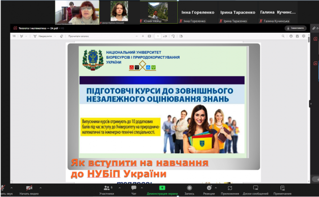 Окремо доповідачка розкрила переваги для учасників консультаційних курсів НУБіП України при вступі та можливість кращої підготовки майбутніх абітурієнтів до складання Національного мультипредметного тесту.