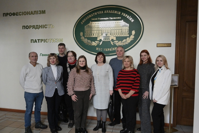 17 грудня 2024 року на базі Дипломатичної академії України імені Геннадія Удовенка спільно з Міністерством закордонних справ України відбулась перша з-поміж серії зустріч для науково-педагогічних працівників закладів вищої освіти, які готують фахівців у галузі міжнародних відносин, з метою їх ознайомлення з напрямами діяльності структурних підрозділів зовнішньополітичного відомства та закордонних дипломатичних установ України. До заходу долучилися представники наукових кіл з 8-ми національних університетів.