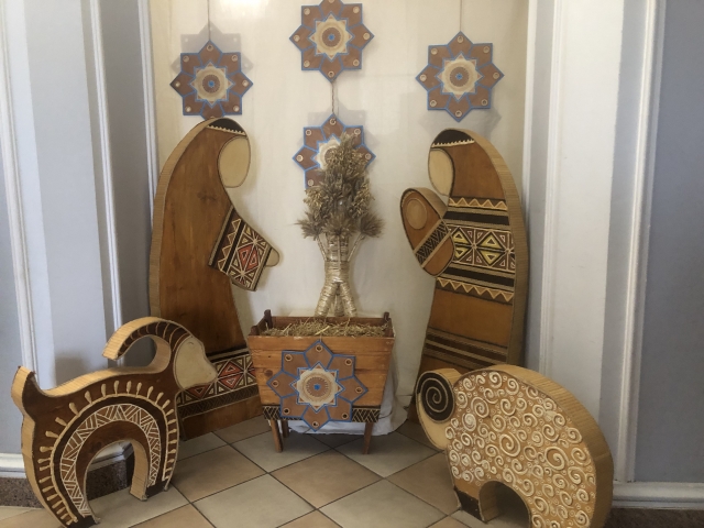 В холі Дипломатичної академії всіх відвідувачів зустрічає Різдвяна шопка, виконана у національному стилі, де матеріалом слугує дерево й солома, з використанням різних технік різьблення. Напередодні свят кожен має нагоду відчути автентику у сучасному трактуванні, щоб показати світові Україну – ту, справжню, яка пройшла війни та пережила штучний голод, винесла плачі матерів, сльози дружин та сестер, зазирала у засмучені очі дітей. Проте вистояла, відродилась і заявила – вона вільна, вона Незалежна! І ось відвідувачі поринають у сакральну історію, описану у псалмах. Вона як нагадування кожному мандрівникові на землі, що небесне дитятко прийшло у світ не випадково, що варто замислитись над проблемами сьогодення і прийдешнього дня.
