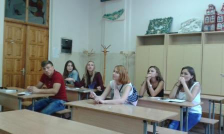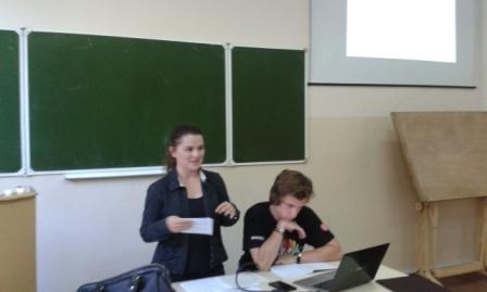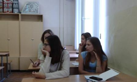 Майбутні екологи Поліна Павленко та Іван Волкогон - студенти 2 групи 3 курсу факультету захисту рослин, біотехнологій та екології – випробовували себе у ролі викладачів філософії. У ролі студентки, поряд з іншими членами групи, виступила доцент кафедри філософії, кандидат філософських наук, Тетяна Вікторівна Данилова.