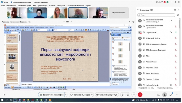 23 вересня 2022 року з 10:00 до 16:00 на кафедрі епізоотології, мікробіології і вірусології факультету ветеринарної медицини НУБіП України в рамках Міжнародної наукової конференції «Єдине здоров’я- 2022» відбулася Міжнародна конференція до 100-річчя кафедри епізоотології, мікробіології і вірусології «Століття на захисті епізоотичного благополуччя». Зважаючи на участь іногородніх та іноземних доповідачів, захід провели у дистанційному форматі.
