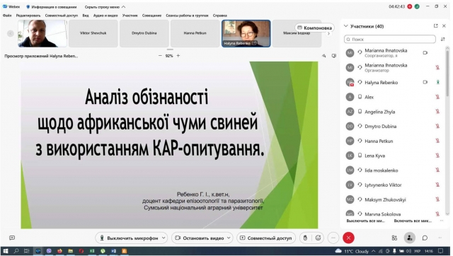 Від України були учасники Сумського національного аграрного університету, доцент кафедри епізоотології та паразитології Галина Ребенко, Поліського національного університету, професор кафедри мікробіології, фармакології та епізоотології Олександр Галатюк, Білоцерківського національного аграрного університету, Одеського державного аграрного університету.