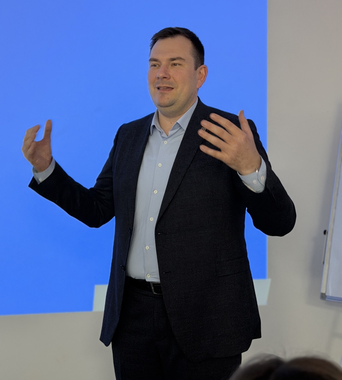 Про стратегічні пріоритети університету розповів начальник відділу міжнародних зв’язків Максим КЛИМЕНКО, який детально зупинився на реалізації стратегії інтернаціоналізації, інтеграції у світовий науковий простір та підтримці міжнародних освітніх програм, що дозволяють студентам формувати власну траєкторію без обмежень кордонами.