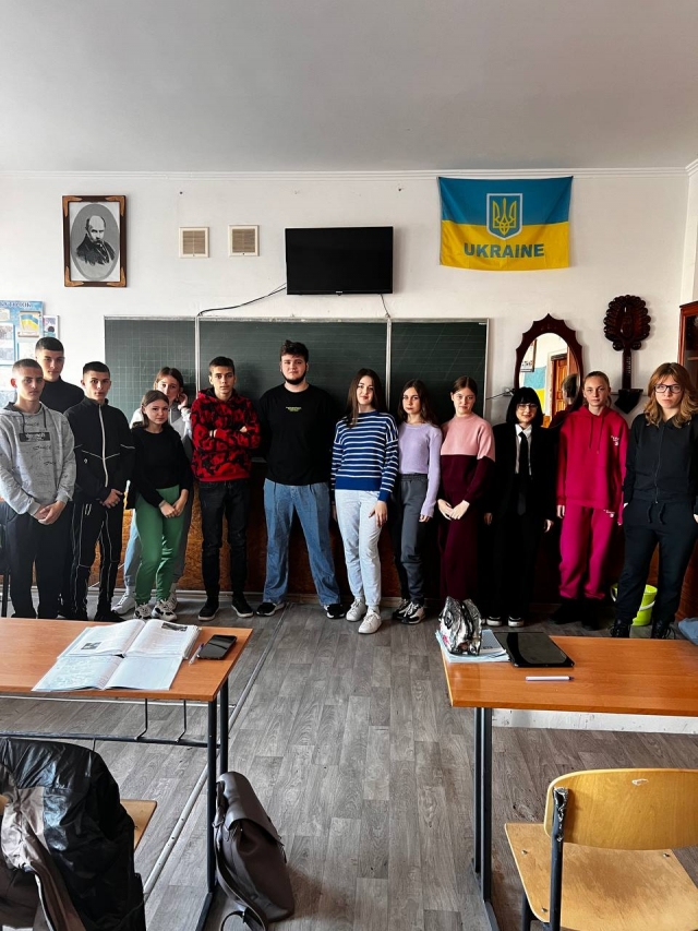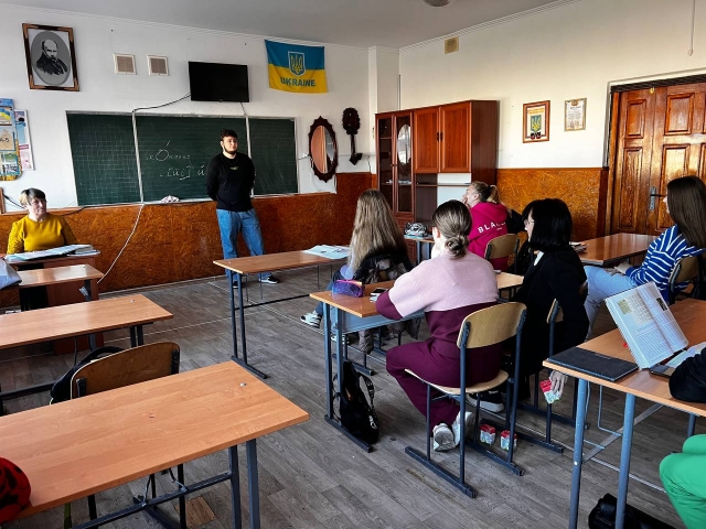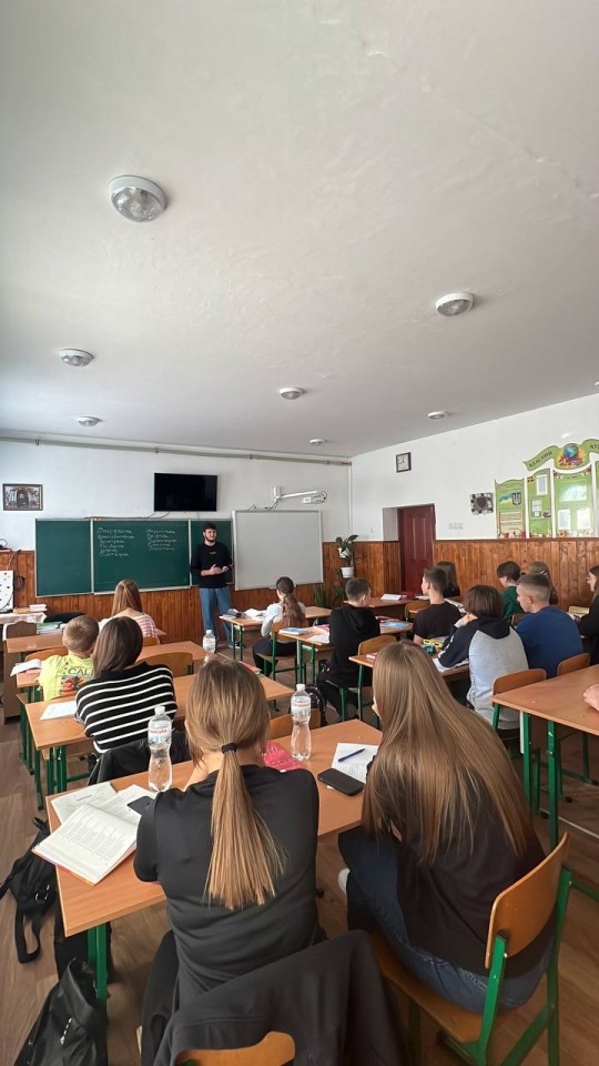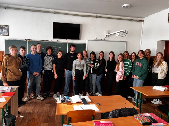 Микола Данильченко, студент другого курсу англомовної групи спеціальності "Менеджмент" факультету аграрного менеджменту уже вдруге відвідав свою рідну школу у селищі Голованівськ Кіровоградської області. Одинадцятикласники-2023 радісно зустріли свого старшого друга та з цікавістю слухали його розповідь про навчання та студентське життя.