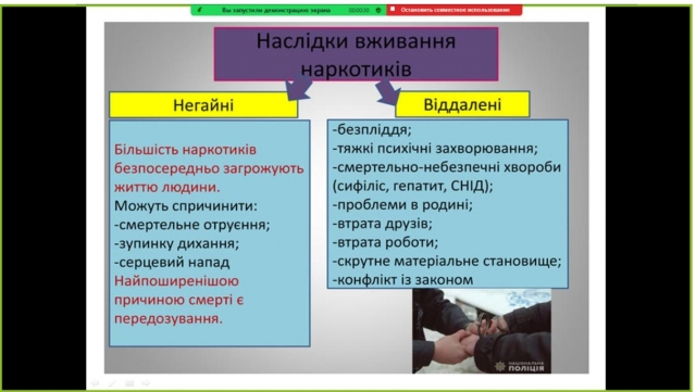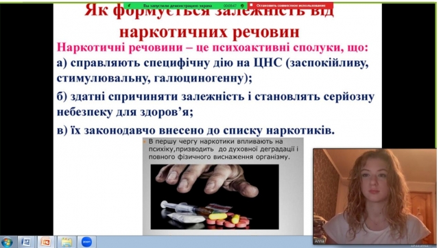 СТУДЕНТКА 6 ГРУПИ 1 КУРСУ ВІНЦИК АННА НА ОНЛАЙН ВИХОВНІЙ ГОДИНІ КУРАТОРА ДОПОВІЛА НА ТЕМУ: НАРКОМАНІЯ - КРОК У БЕЗОДНЮ !!!