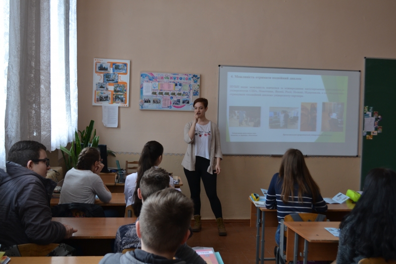 Студентка Лось Ірина розповіла учням старших класів Миронівського навчально-виховного комплексу № 2 про наш факультет