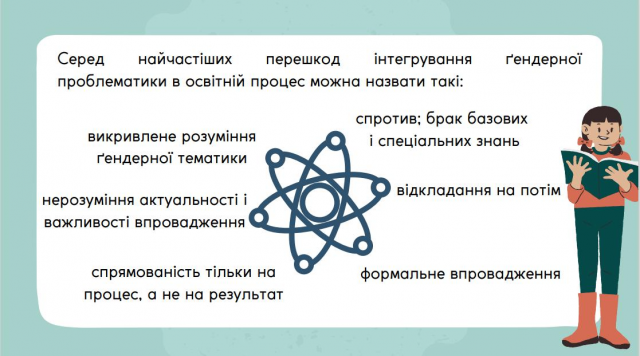 Освіті належить пріоритетна роль у зміні застарілих шаблонів, адже саме молодь визначатиме, яким буде майбутнє нашої держави – з середньовічним ставленням до жінки як до додатку до чоловіка і тла його життя, чи відбудеться усвідомлення ролі, права і здатності жінки мати власну, нічим не гіршу за чоловічу історію успіху. Найголовніше, щоб гендерна рівність була не лише задекларована, але й стала реальністю.