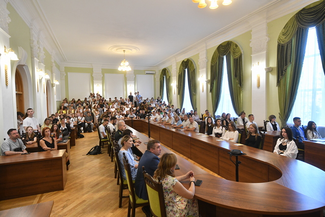 Передаючи вітання від ректора університету Станіслава Ніколаєнка, проректор з наукової роботи та інноваційної діяльності Вадим Кондратюк наголосив на правильності вибору першокурсниками закладу вищої освіти, водночас зауважив, що успіху досягне лише той хто буде невтомно та сумлінно працювати над собою, хто буде з повною відповідальністю ставитися до свого студентського обов’язку - вчитися!