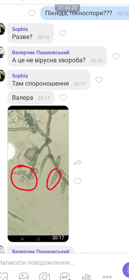 Уже тривалий період в умовах карантину основна увага студентів і викладачів зосереджена на дистанційному вивченні навчальних дисциплін. Водночас, не забуваємо й про наукову роботу, зокрема діяльність наукового гуртка на кафедрі фітопатології ім. акад. В.Ф. Пересипкіна (https://nubip.edu.ua/node/32976). Його роботу організовує доцент Мирослав Піковський. Традиційно наші дослідження проводяться на базі проблемної науково-дослідної лабораторії Мікології і фітопатології. Однак, виходячи із сьогоднішніх реалій, доводиться працювати дистанційно. З цією метою організовано групу у Viber, також проводяться відеоконференції у Zoom.