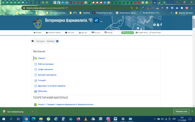 Для опанування теоретичних питань і виконання лабораторних занять студенти використовували електронний навчальній курс «Ветеринарна фармакологія» (дві частини) (https://elearn.nubip.edu.ua/course/view.php?id=17; https://elearn.nubip.edu.ua/course/view.php?id=2725), які розміщенні на навчальному порталі НУБіП України.