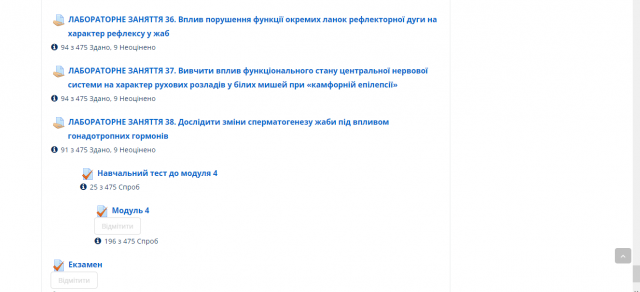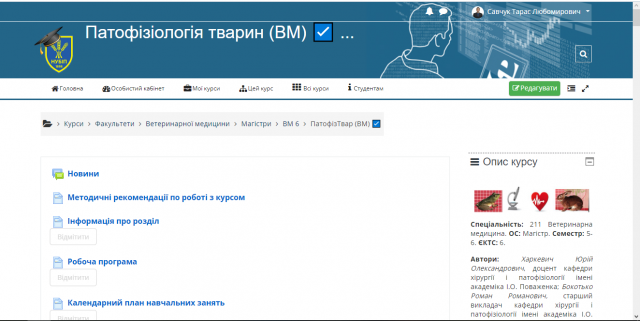 Також, здобувачі вищої освіти використовували електронний навчальний курс дисципліни «Патофізіологія тварин», який розміщений на платформі Elearn (https://elearn.nubip.edu.ua/course/view.php?id=1777).