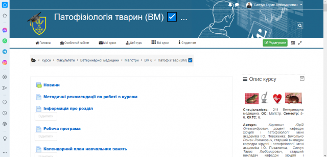 Також, здобувачі вищої освіти використовували електронний навчальний курс дисципліни «Патофізіологія тварин», який розміщений на платформі Elearn (https://elearn.nubip.edu.ua/course/view.php?id=1777).