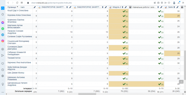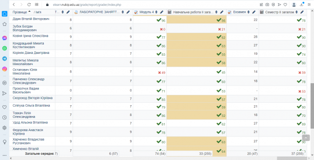 Академічна успішність студентів повного курсу становила 87%, скороченого курсу становить 82%. Це студенти, які опанували викладені лекції, виконали завдання з лабораторних і самостійних робіт та успішно склали модулі. Інші студенти були недопущені до складання заліку та екзамену у зв’язку з невиконанням навчального плану.