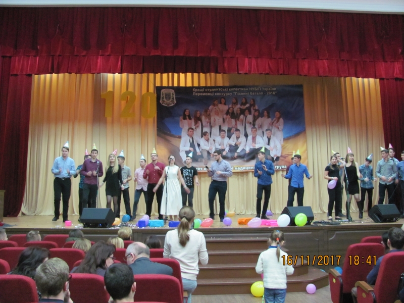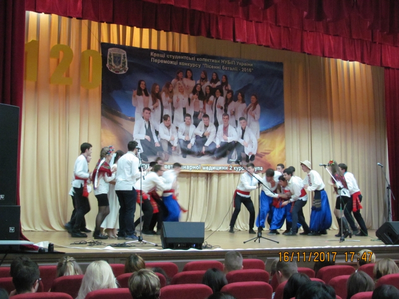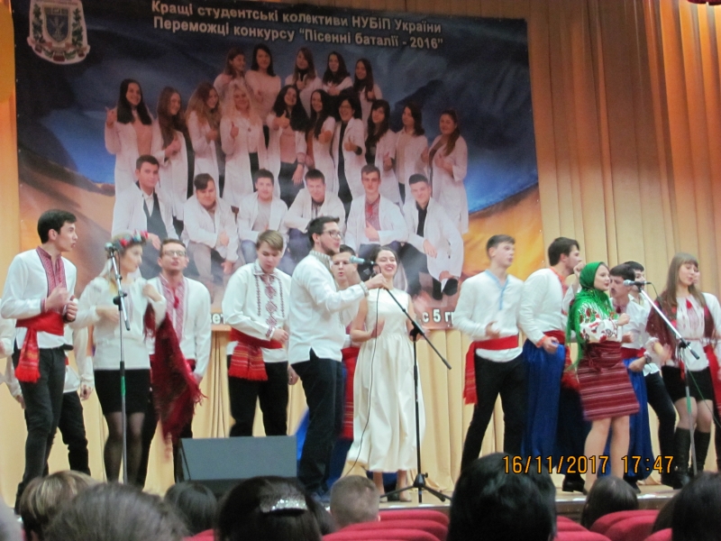Цьогоріч для вивчення студентам було запропоновано 6 пісень – українські народні пісні «Зеленеє жито, зелене», «Ой на горі та й женці жнуть», «Біла хмара, чорна хмара», пісня Анатолія Драгомирецького та Івана Поповича «Василина», твір популярної сьогодні групи Т.І.К «Я люблю Україну» і, звичайно, «День народження» Юрія Рибчинського та Павла Зіброва, адже кожне дійство, яке відбувається впродовж цього навчального року, присвячене насамперед 120-річчю Національного університету біоресурсів і природокористування України. Напередодні конкурсного дня між учасниками «Баталій» – академічними групами 16 факультетів та ННІ – було проведене жеребкування, яке визначило порядок виступів і пісню, яку виконуватиме група. Команду агробіологічного факультету представляли студенти 3 курсу 5 групи.