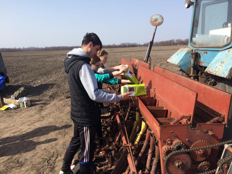 Студенти II курсу агробіологічного факультету на навчальній практиці змогли побачити увесь процес сівби насіння овочевих культур, а саме власноруч налаштувати сівалку СО-4,2 та визначити норму висіву насіння. Водночас студентів навчили визначати норму висіву насіння за оптимальною кількістю рослин на одиницю площі та кількістю насінин в одному грамі, використовуючи дороге насіння гетерозисних гібридів овочевих культур. Студенти вивчили способи передпосівної підготовки насіння для отримання рівномірних посівів, в т.ч. сівбу дрібнонасінних овочевих культур разом із мінеральними добривами, маячними культурами, січкою та ін. Крім того, студенти разом із асистентом кафедри овочівництва Матвієнком А.І. контролювали рівномірність висіву насіння, глибину його загортання та густоту насінин на 1 м погонний, щоб в майбутньому забезпечити оптимальну густоту рослин.