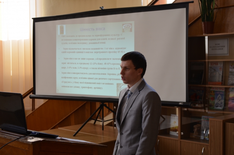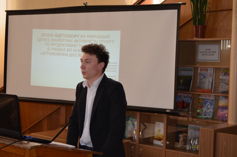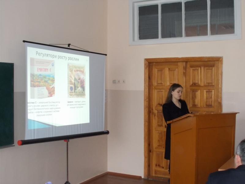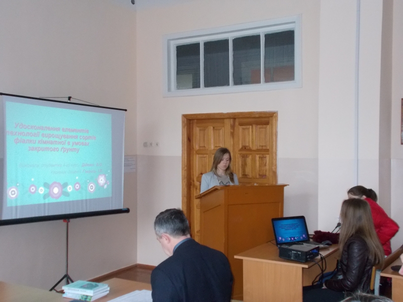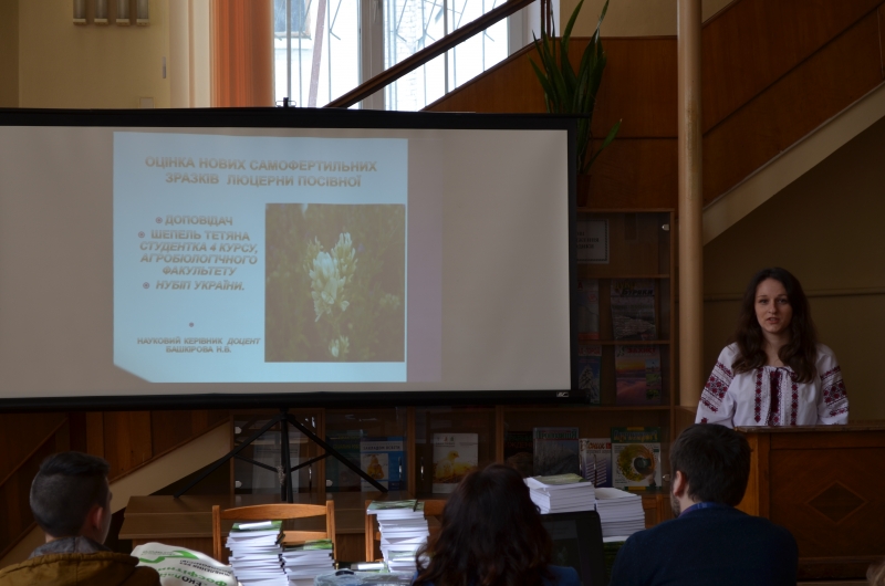 Після привітального слова начальника науково-дослідної частини Володимира Отченашка розпочались виступи студентів – учасників. Честь першого виступу була надана президентській стипендіатці, одній з переможниць цьогорічного Всеукраїнського конкурсу студентських наукових робіт зі спеціальності «Агрономія», студентці 4 – го курсу Тетяні Шепель (науковий керівник - доцент Башкірова Н.В.).