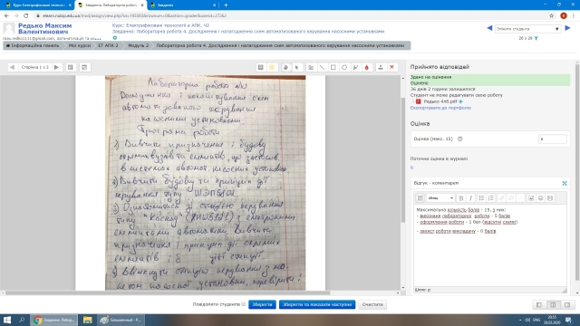 Також паралельно студенти вивчали методичні рекомендації та оформляли виконанні самостійні та лабораторні роботи. Звіти з оформлених робіт надсилались викладачам для перевірки.