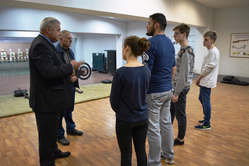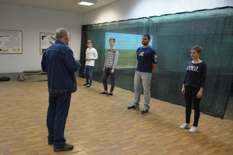 Також фоторепортерам дали змогу пройти підготовчий інструктаж та вистрелити з рушниці. Зброя на військовій кафедрі знаходиться у відмінному стані, інструктування проведено зрозуміло, контроль техніки безпеки - на вищому рівні.