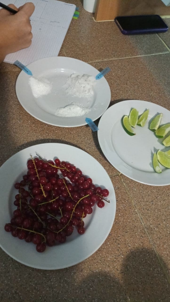 Кислий смак у чистому та змішаному вигляді досліджували з використанням плодів лайму та червоних порічок.