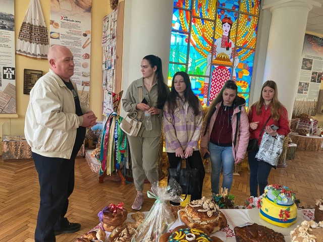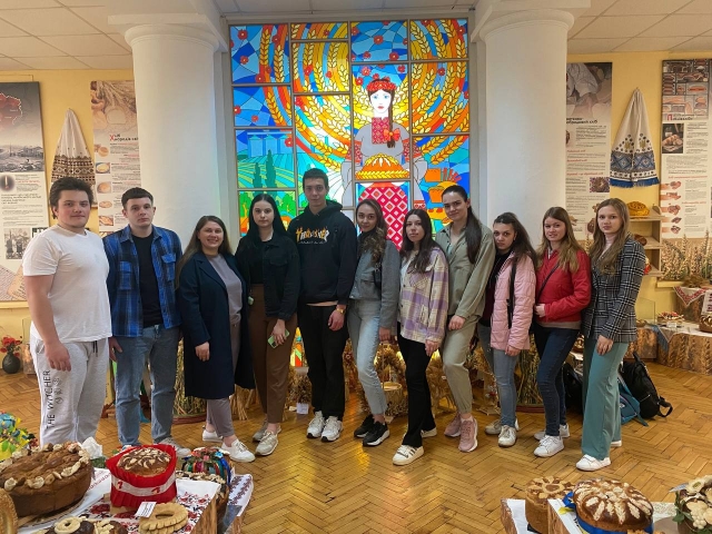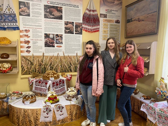 Студенти дізналися, що у Музеї зібрано понад 2000 експонатів, які розповідають про історію хліба, його значення для людини, походження основних зернових культур. Серед іншого в експозиції відображена велика роль українських учених-селекціонерів – творців золотого колоса. Також студенти харчовики побачили понад 150 красивих короваїв з різних куточків України в експозиції «Хліб – усьому голова». Окраса її, національний хліб України – наша пишна українська паляниця з рум'яним гребінцем. В Музеї також зібрано понад 100 експонатів різних сільськогосподарських культур: пшениці, жита, вівса, ячменю. Також в музеї другокурсники познайомилися із експозицією, яка присвячена Тарасові Шевченку, який високо цінував та описував у своїх творах хліб і важку працю хлібороба, фотоекспозицією, яка висвітлює розвиток хліборобства в період колективізації та голодомору в Україні, виставкою, що присвячена історії хліборобства в роки Другої світової війни та післявоєнний період, експозицією, яка відображає досягнення українських селекціонерів-академіків: Василя Ремесла, Василя Юр'єва, Федора Кириченка.