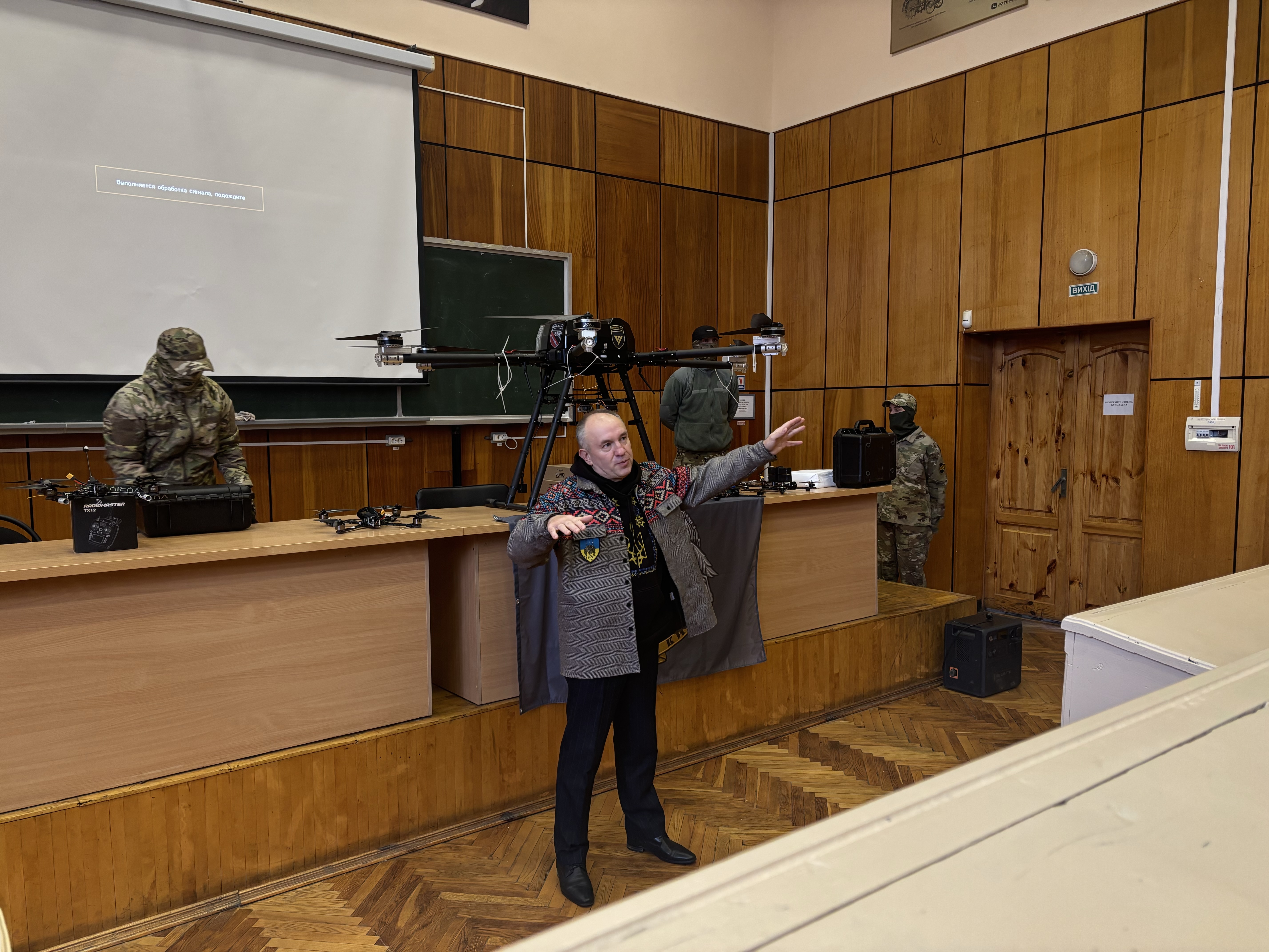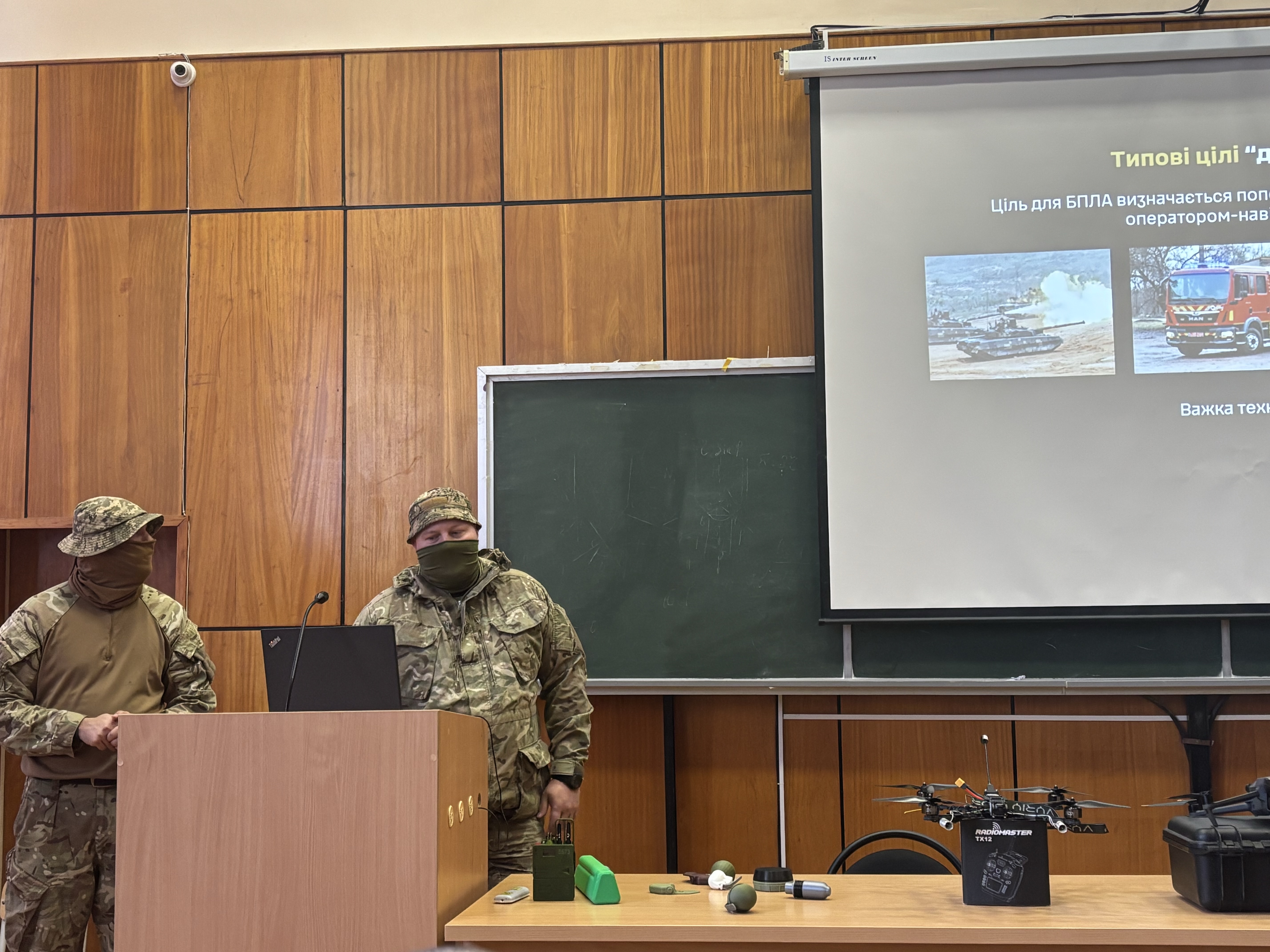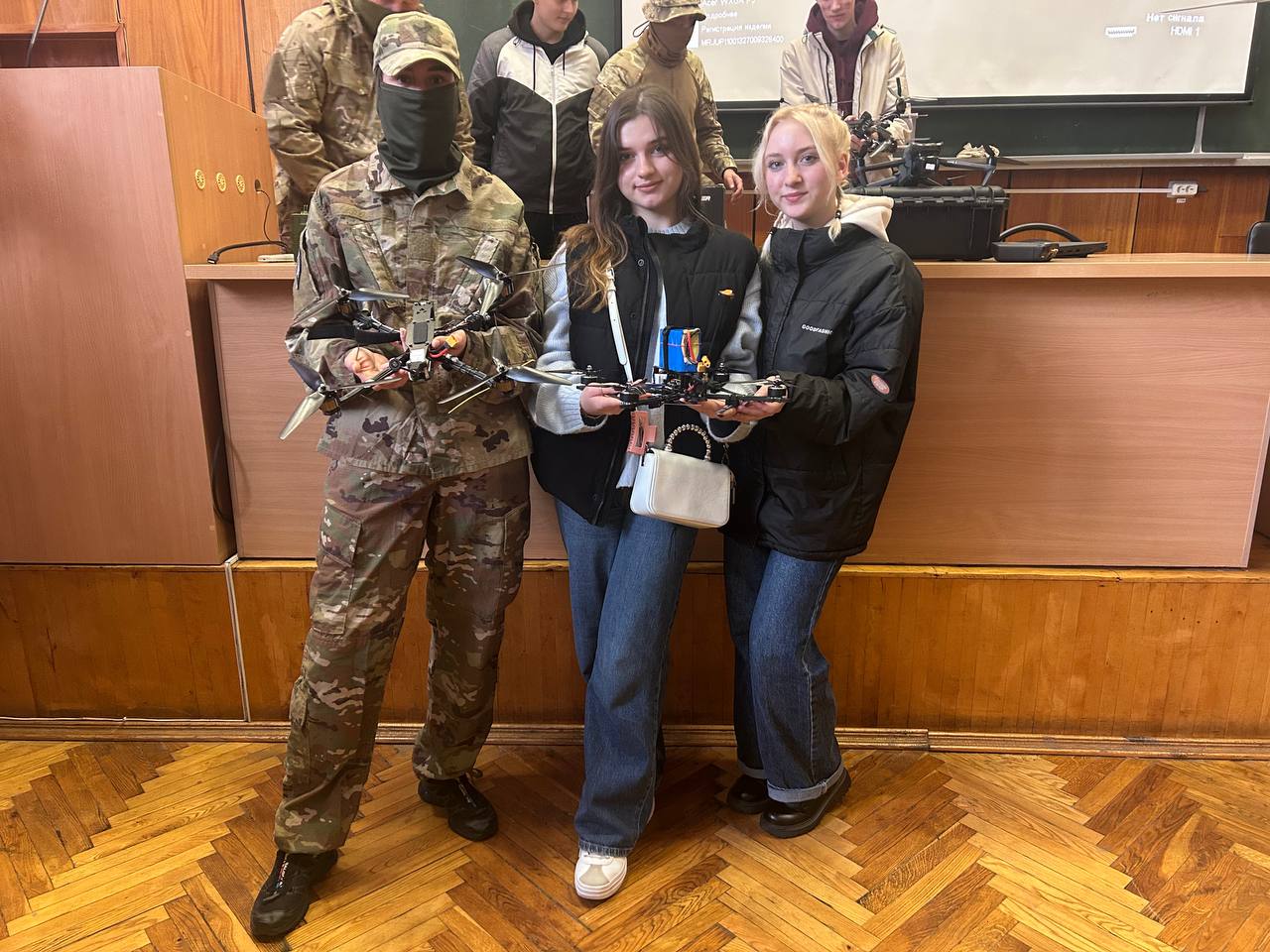 Під час зустрічі військові продемонстрували студентам зразки сучасних дронів, які використовуються для аеророзвідки та виконання спеціальних завдань. Студенти мали унікальну можливість не лише побачити техніку зблизька, але й потримати її у руках, дізнатися про технічні характеристики, можливості та принципи застосування в реальних бойових умовах. Особливе зацікавлення викликали розповіді про використання безпілотників у складних операціях, їхню ефективність та роль у збереженні життя військових.