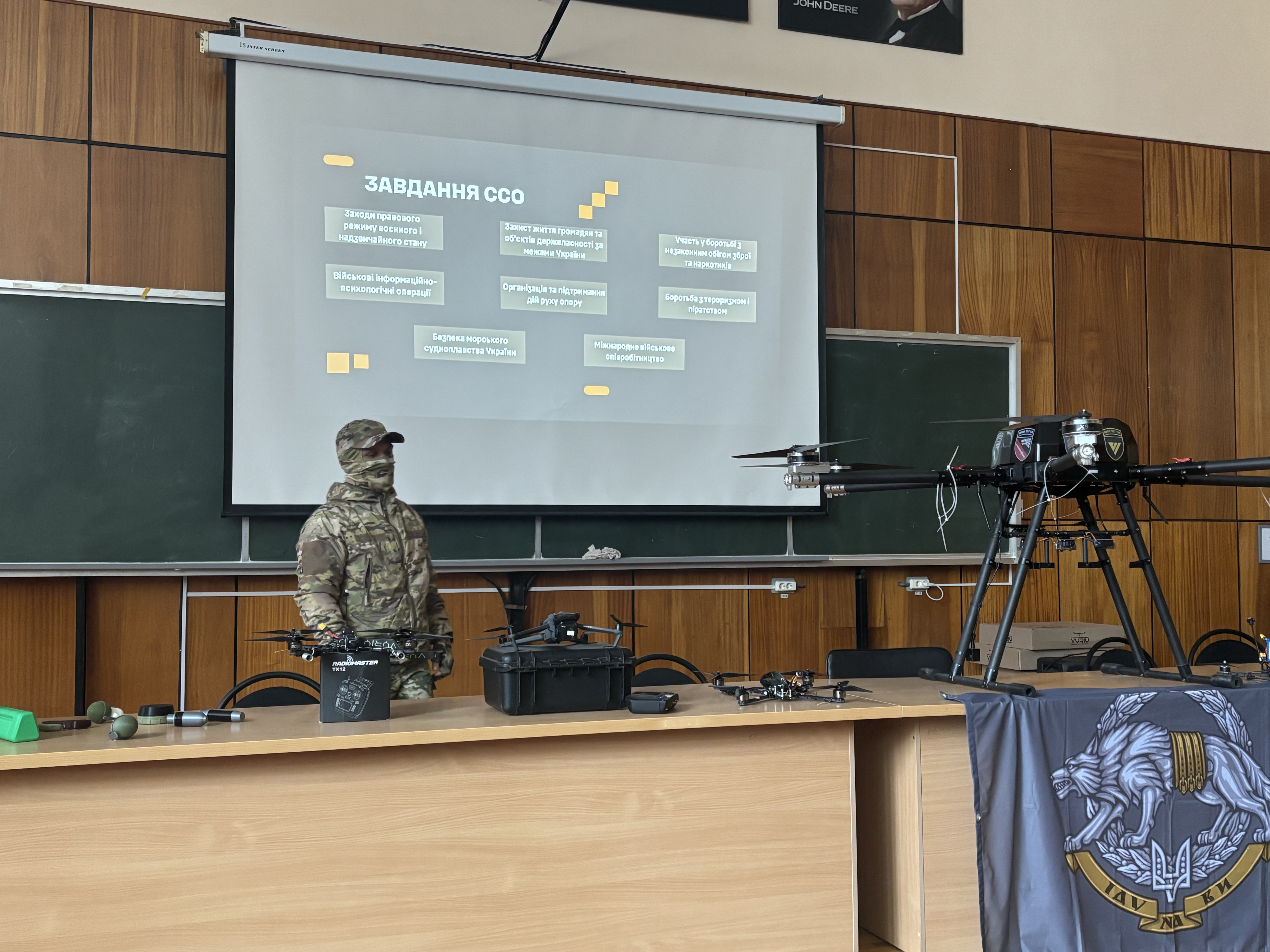 Після демонстрації техніки бійці провели пізнавальну лекцію щодо діяльності Сил спеціальних операцій. Студенти дізналися про основні завдання ССО, специфіку їхньої підготовки, принципи функціонування підрозділів, а також про високий рівень професійності, який вимагається від військових цієї ланки. Військові поділилися власним досвідом участі у бойових операціях, розповіли про виклики, з якими стикаються щодня, та наголосили на важливості підтримки армії суспільством.