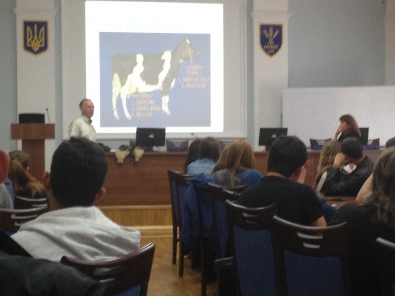 Перша його лекція була присвячена навчанню в університеті штату Айова, його змісту та структурі викладання. Зарахування студентів на першій рік навчання по тваринництву складає близько 180-190 студентів, що можна стверджувати про те, що наш факультет виходить на правильний шлях.
