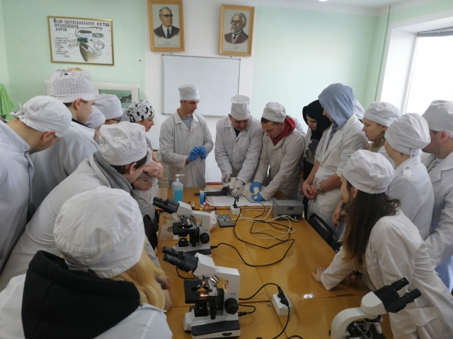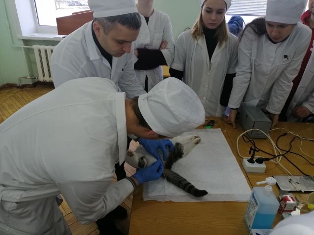 На лабораторних заняттях на тему «Отримання сперми у плідників. Мікроскопічна оцінка сперми за рухливістю та густиною», виконаних студентами 9 і 10 груп 2 курсу скороченого терміну навчання 10 лютого 2020 р., доцент Сергій Деркач, асистент Юрій Масалович та аспірант Максим Саліженко ознайомили студентів із особливостями методики отримання сперми у котів, приготування препарату «роздавлена крапля» та оцінкою еякуляту.