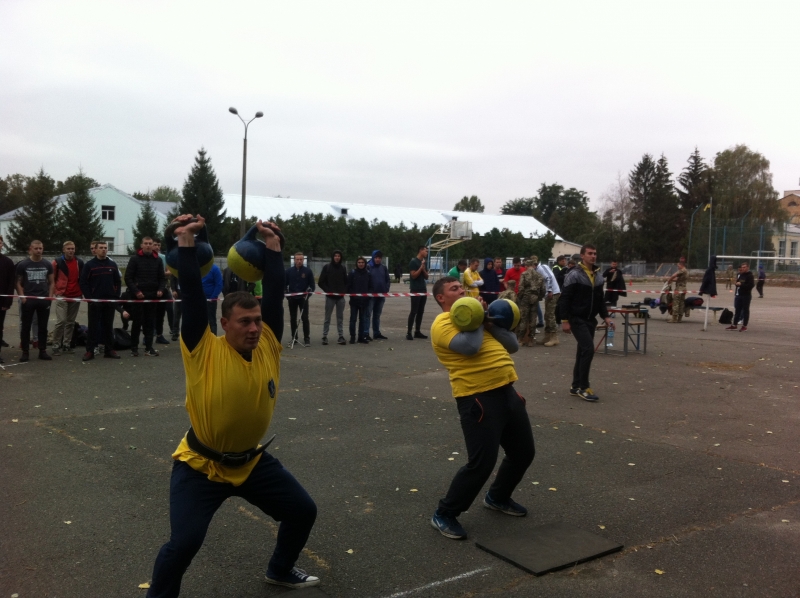 Наші студенти змагалися в 12 військово-спортивних видах змагань та достойно представили факультет. Зокрема, студенти 2 курсу Короткий Василь та Короткий Олександр зайняли І місце із штовхання гирі 2×24 кг.