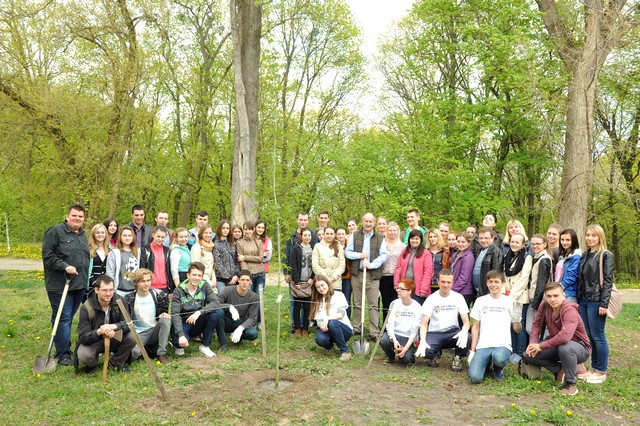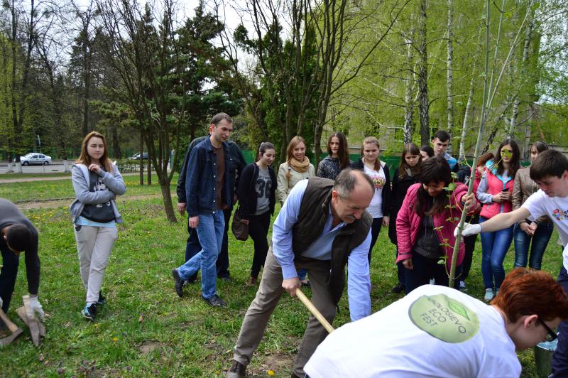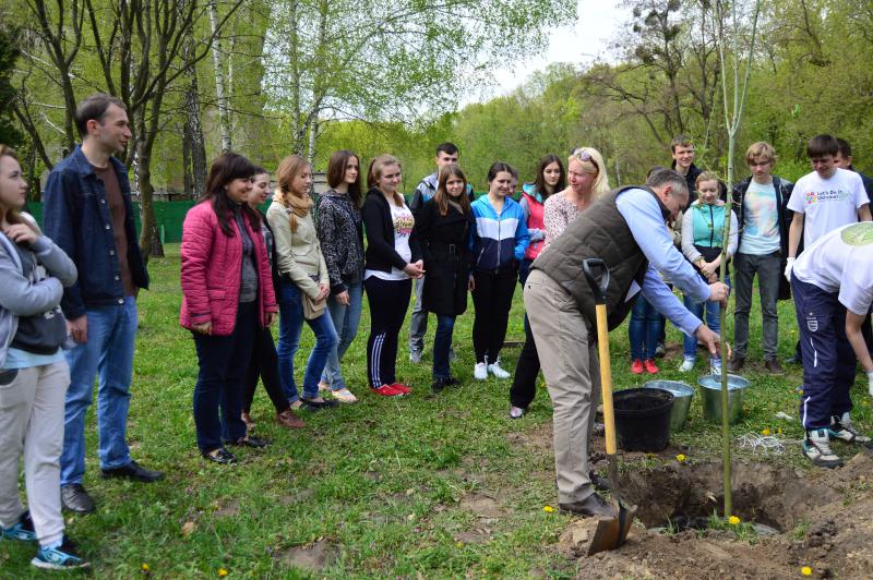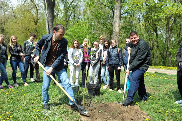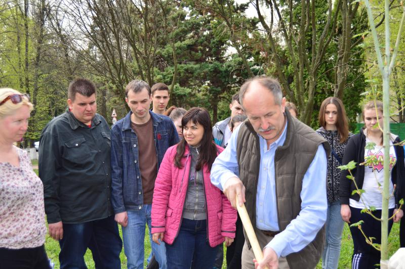 Висадка дерев пройшла під чітким керівництвом проректора з навчальної і виховної роботи Кваші С.М. та директора ботанічного саду НУБіП України Колісніченко О.В.