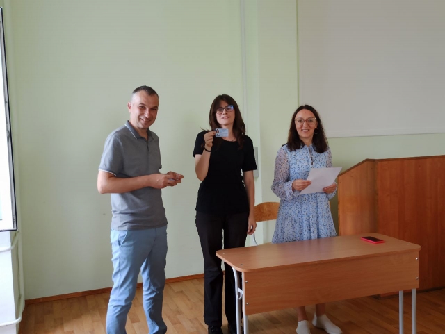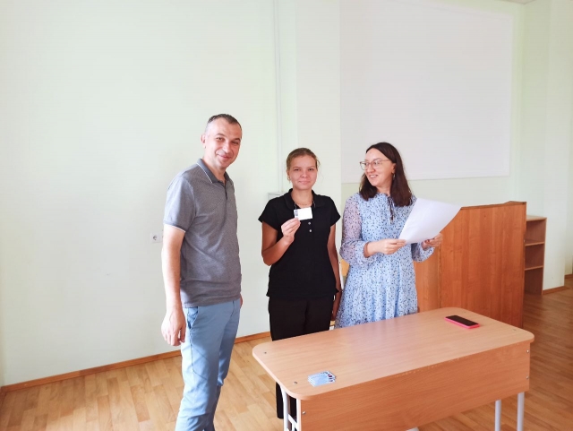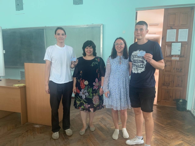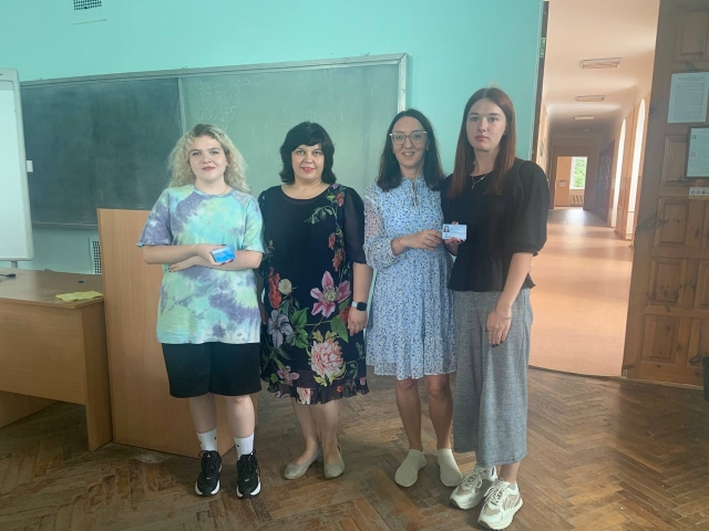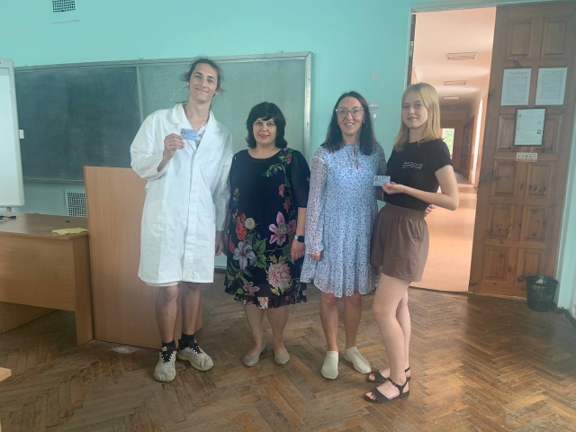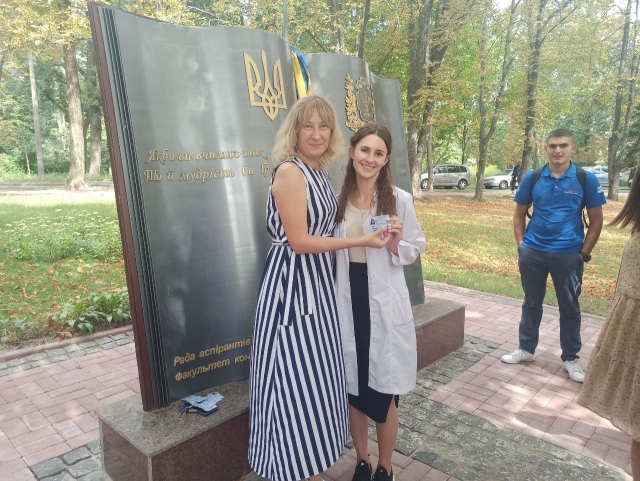 Завідувач кафедри загальної екології, радіобіології та безпеки життєдіяльності Алла Клепко та заступник декана з наукової та міжнародної діяльності Валерія Бондарь вручили студентські квитки першокурсникам спеціальності 101 «Екологія». Алла Володимирівна та Валерія Іванівни привітали студентів й побажали успішного навчання та активного, плідного, яскравого студентського життя.