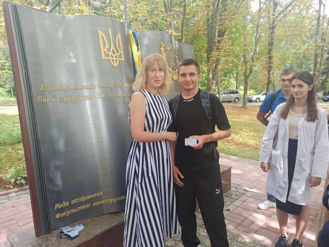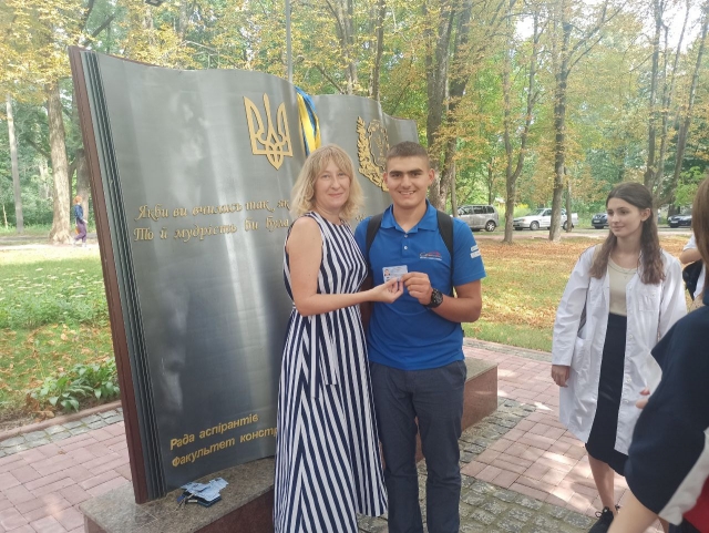 Заступник декана з навчальної роботи і господарської діяльності Петро Дрозд та заступник декана з наукової та міжнародної діяльності Валерія Бондарь вручили студентські квитки першокурсникам спеціальності 162 «Біотехнології та біоінженерія». Петро Юрійович та Валерія Іванівна побажали натхнення в здобутті знань, сміливості в досягненні поставлених цілей, великих та малих перемог.