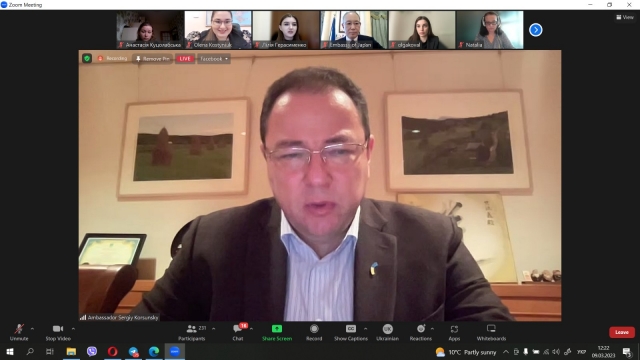 Також учасники мали змогу послухати Надзвичайний і Повноважний Посла України в Японії Сергія Корсунського, що інформативно та детально розповів про першу реакцію й дії українського посольства у Японії саме в той, як всі дізнались про початок повномасштабного вторгнення. За участі «Групи дружби» Японії України, а саме парламентського депутата пана Морі, була підготовлена перша заява, і саме завдяки ній, вдалося отримати мандат на допомогу Україні. Вдалося зустрітись з великою кількістю представників парламенту, губернаторами префектурами Японії, за допомогою яких, вдалося організувати створення надзвичайно комфортних умов для біженців, що шукали порятунку в Японії. Пан Сергій також виразив особливе захоплення та щиру вдячність стосовно випадку, коли японський народ підтримав посилення санкцій, навіть якщо це вплине на їх особисте життя.