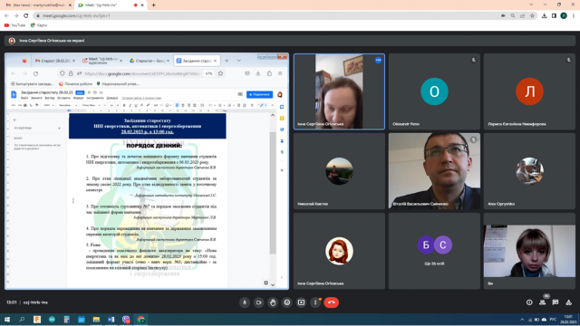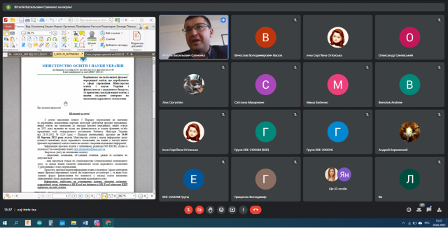 Заступник директора Віталій Савченко ознайомив всіх присутніх із графіком освітнього процесу у весняному семестрі 2022 - 2023 р. У розрізі змішаного формату навчання із 06 березня 2023 року він продемонстрував оновлений розклад занять, який, як завжди, буде опублікований на офіційній сторінці інституту.