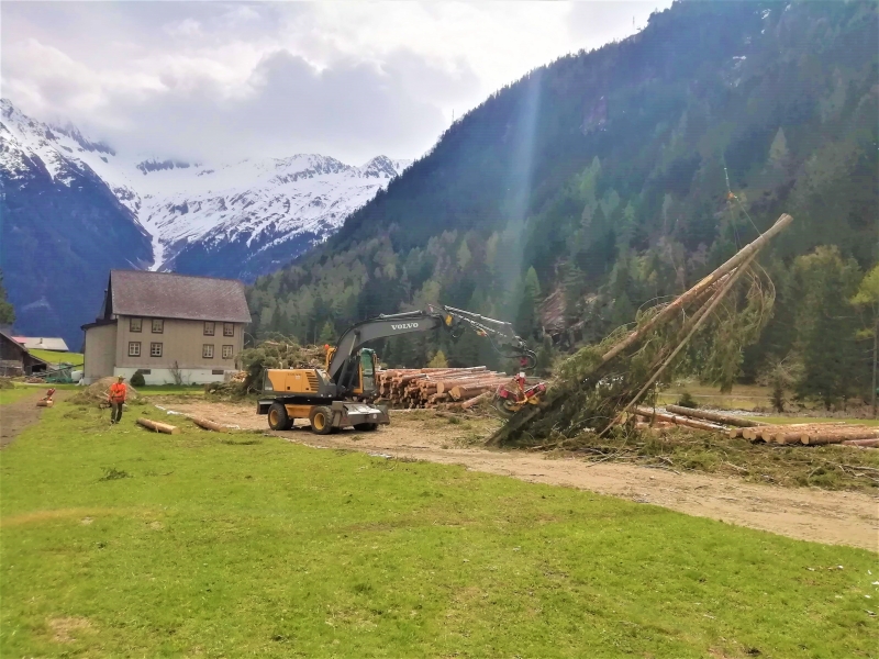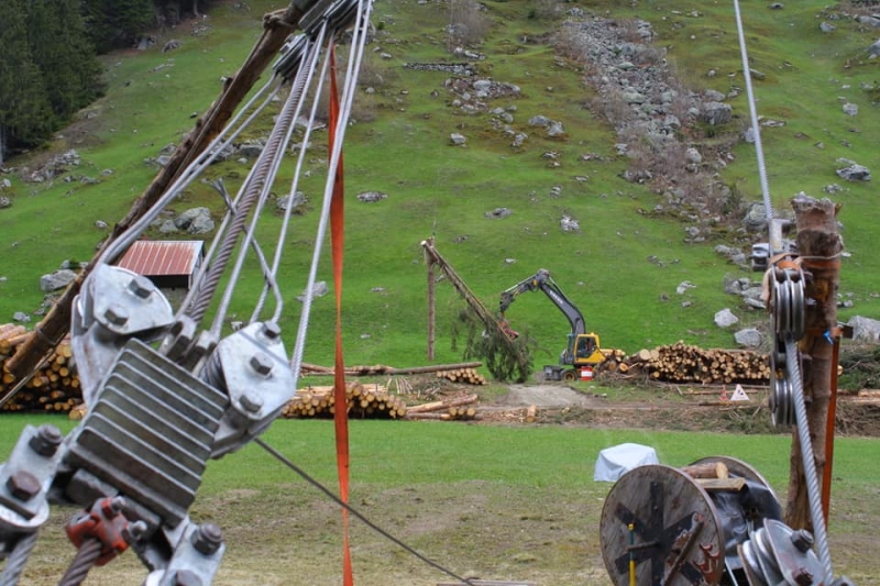 У один із останніх днів відбувся польовий виїзд на місце лісозаготівлі у гірській місцевості, де деревину вирубували і переміщали за допомогою канатної трелювальної установки. Загалом, лісозаготівля – це безперервний процес, до якого залучено всього 4 людини, двоє з яких звалюють дерева і під’єднують їх до трельовочних тросів на канатній установці, одна людина керує канатною установкою і ще одна людина управляє харвестером. До речі, канатна установка мала протяжність 1200 м, а максимальний розмір може сягати і 2000 м.