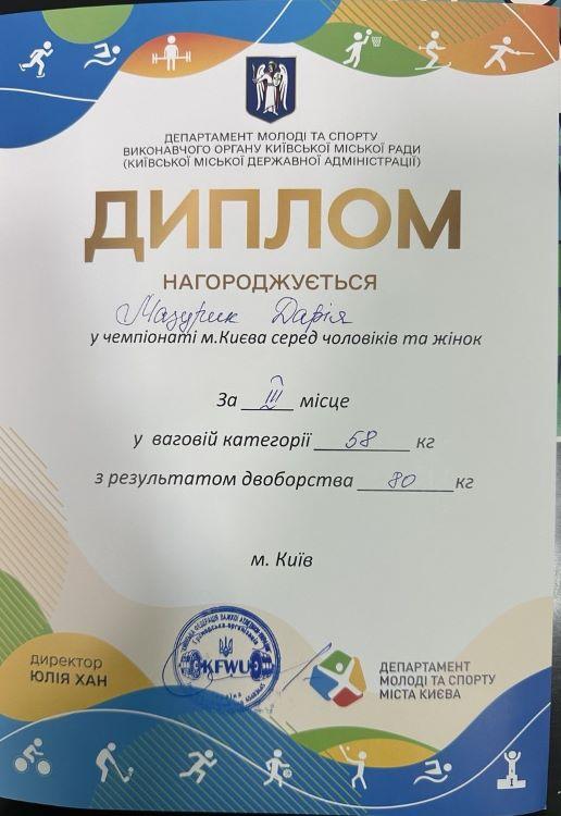 • Дарія МАЗУРИК3 місце, вагова категорія до 58 кг (ННІ НОТ)