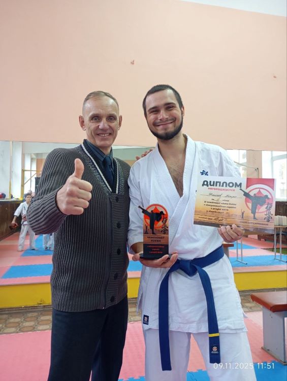У той же день в спортивному залі НУБіП України відбувся Чемпіонат міста Києва з кіокушинкайкан карате в розділі ката. Наш університет також був представлений у цих змаганнях: студент Петро ШИШКОВ продемонстрував впевнене та технічно виважене виконання, що дозволило йому посісти друге місце та увійти до числа найсильніших каратистів столиці.