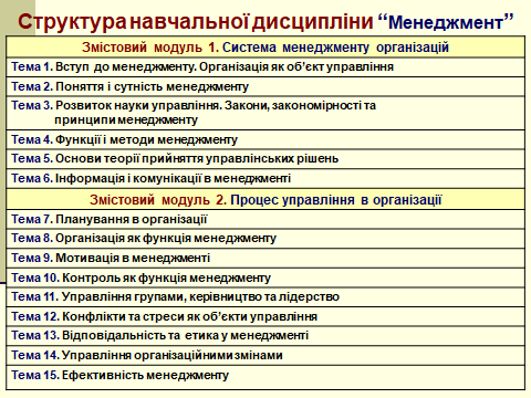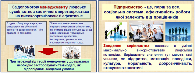 Викладач разом зі студентами обговорили передумови виникнення управління та необхідність вивчення дисципліни «Менеджмент», особливості та правильне розуміння специфіки сучасної організації як об’єкту менеджменту.